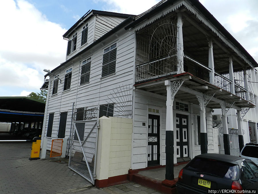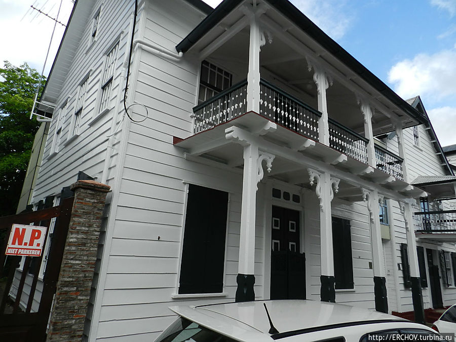 После завтрака отправляемся на экскурсию по городу со звучным названием Парамарибо. Город начинался с форта под названием Зеландия (сколько же этих Зеландий всего по миру?) Когда-то гарнизон форта умещался за крепостной стеной, позже рядом появились казармы. Правда здание казарм горело и до наших дней дошли одни стены, зато рядом стоят весьма милые голландские домики.