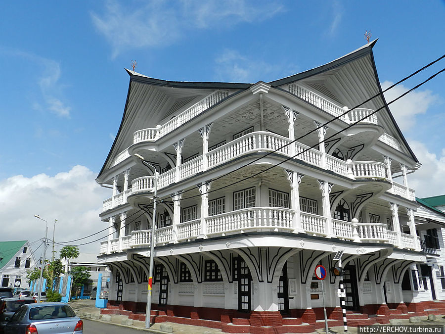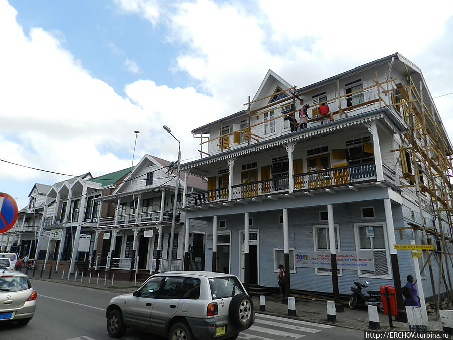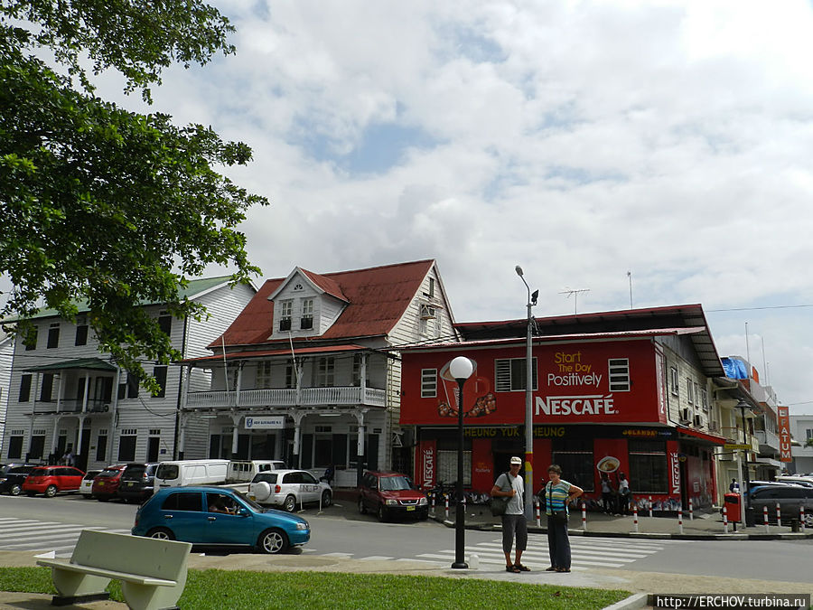 Гуляя по Парамарибо порой кажется, вот на этой улице снимали фильм про Мери Поппинс с Натальей Андрейченко в главной роли. А здесь когда-то давно «Человек с бульвара Капуцинов» Андрей Миронов крутил ковбоям своё кино, но после этого здание чуть-чуть перестроили, впрочем, как и улицу.