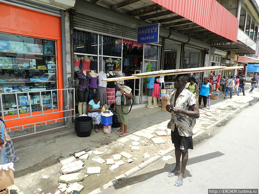 Добровольцы из Суринама нанимались в армию США. Суринамским солдатам, конечно, что-то платили, но полегло их в далёкой Корее предостаточно. Очень жарко, влажно и душно. Даже с местных пот льёт ручьём. Темнокожие люди основное население города. Их пращуры отпахали своё на плантациях, и их деды устремились в города.