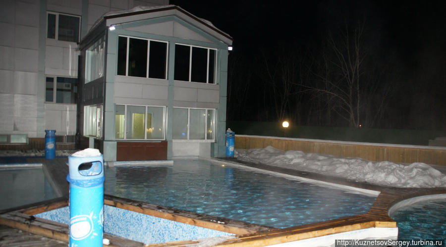 Главное преимущество отеля и его отличие от всех отелей, в которых приходилось останавливаться — наличие открытого бассейна с теплой (+38) термальной водой. Поэтому два раза в сутки — утром перед работой и вечером после работы купался в бассейне, отороченном сугробами снега. Камчатка! Только ради этого следовало выбрать этот отель. Особенно советую иностранцам.