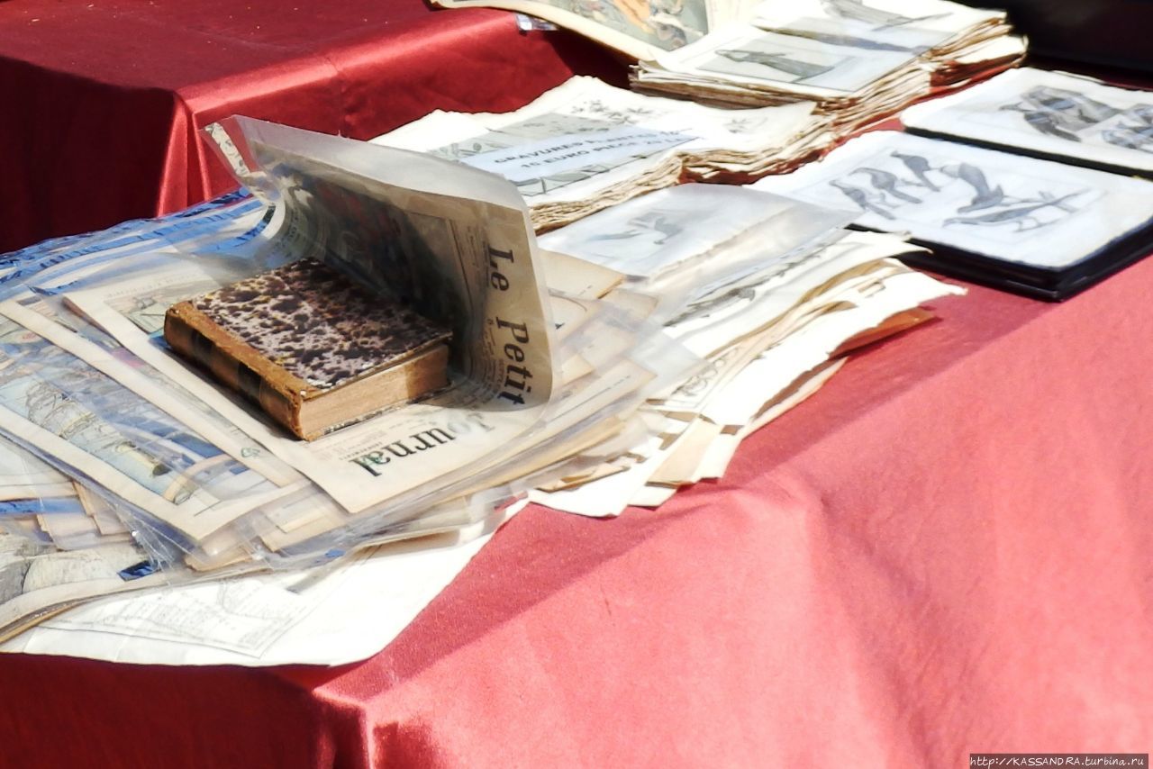 Не обращая внимания на покупателей, продавцы античности броканте беседуют, едят и пьют из антикварной посуды в исторических интерьерах.