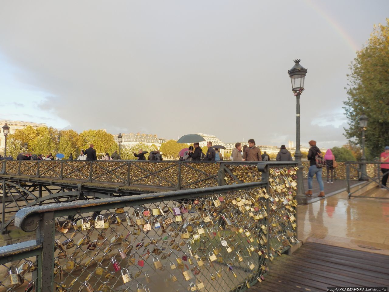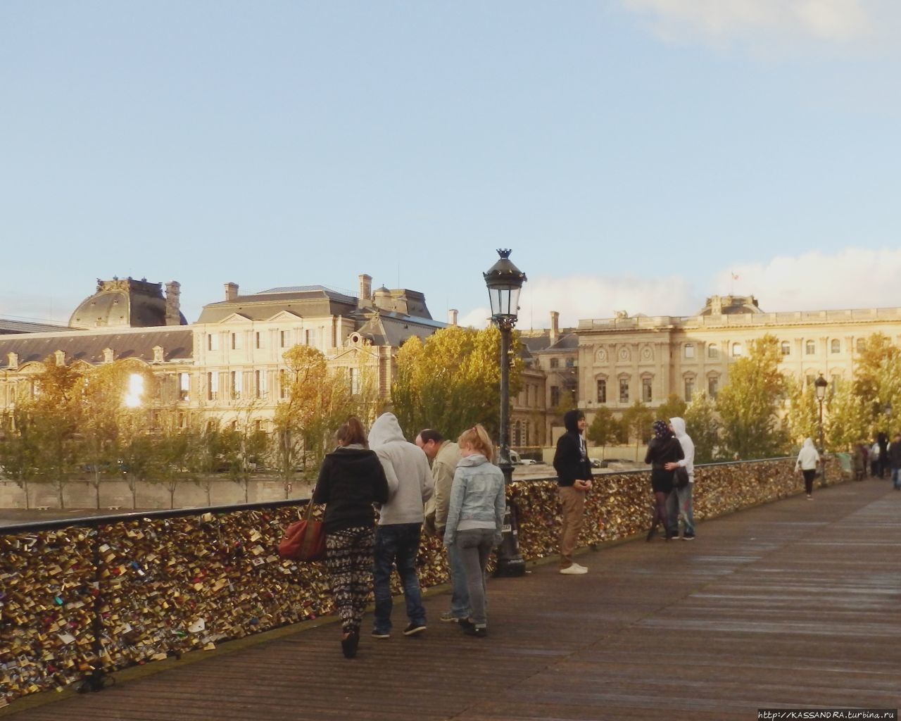 Вслед за влюбленными со всего мира, туристы поддерживают обычай оставлять замки с выгравированными именами и признаниями в любви на парапетах Моста Искусств.