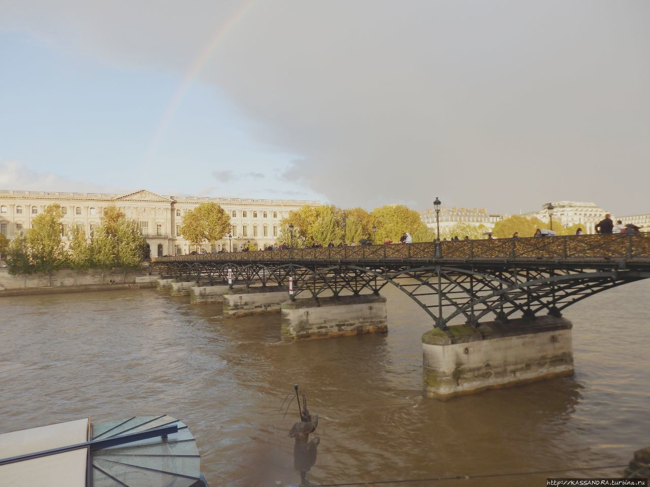 Длина пешеходного моста Искусств — 155 метров, ширина -11 метров. Мост Искусств — первый железный мост Парижа через Сену.