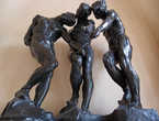 "Три тени" — еще одна скульптурная группа, которая наравне с "Мыслителем" и "Поцелуем", задумывалась для "Врат Ада". Бессильные, беспомощные, не способные противостоять смерти, эти скорбные фигуры изображают души, томящиеся в ожидании у Врат ада.
