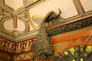 Бутик?! Да! Этот бутик — единственная работа Мухи подобного рода. Он спроектировал его полностью. Всё — от экстерьера до интерьера, от идеи до дверной ручки — образец новой эстетики, помещение, которое само по себе — произведение искусства. Он создал не функциональную торговую площадь, а пространство как оправу для ювелирных украшений. В так свойственной ему роскошной, театральной манере модерна. Бутик открылся в 1901 году на рю Руаяль, в самом сердце города и весь светский Париж собрался любоваться им.