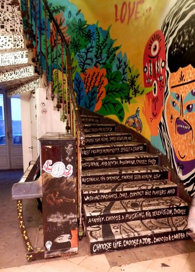 И сейчас на стенах и на потолке в подъезде на Риволи, 59 не осталось ни одного свободного от творчества художников места.