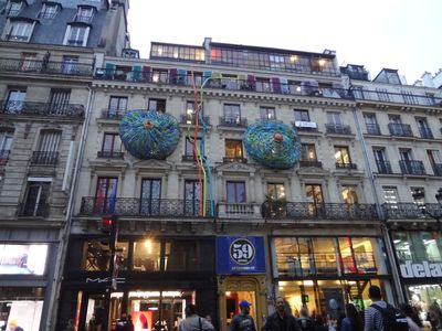 Этот дом на улице Риволи можно узнать издалека по необычному фасаду, каждый раз украшенному новыми инсталляциями из бытовых отходов.