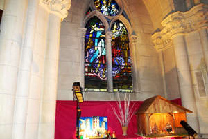 В окнах часовни установлены красивые витражи со сценами из жизни святых, Марии Магдалины и Жанны д'Арк.