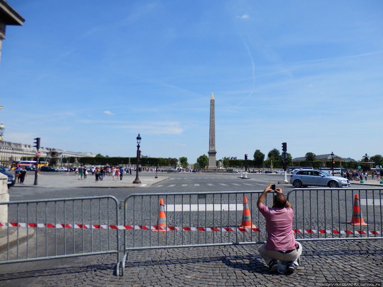 Центр площади, где сейчас установлен египетский обелиск Рамзеса II, сначала занимал конный королевский памятник Людовику XV, а затем гильотина. Площадь была залита французской кровью.