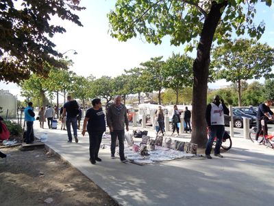 На улице рядом с Эйфелевой башней раньше парковались туристические автобусы и туристы проводили свободное время в этом районе.