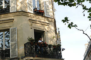 Я люблю начинать гулять по Монмартру совсем не с парадной его стороны, а вот так попрыгав у красных крыльев, нырнуть на rue Lepic и подниматься на холм оттуда, сначала исходив маленькие улочки и кружащую улицу Лепика, рассматривая любимые места, дома, кафешки, праздношатающийся люд и колоритных жителей этого района. Здесь совершенно свой особый дух и своя атмосфера, ты чувствуешь ее сразу и мне здесь хорошо. Здесь можно затеряться в маленьких улочках и не встретить ни души, ведь весь шум и толпы туристов — там, чем ближе к вершине.