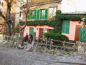 За исключением клиентов, в богемном ночном заведении "Au Lapin Agile" ("У шустрого кролика") мало что изменилось. Вас по-прежнему ждет красивая терраса в тени большой акации, розовый фасад, увитый душистым горошком и розами, зеленые ставни и рисунок Андре Жиля в виде кролика, выскакивающего из кастрюли, благодаря которому местечко и получило свое название "Lapin à Gill" ("Кролик Жиля").