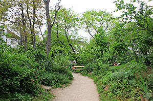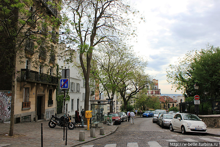 Поднявшись по улице Плакучих ив (rue des Saules) обратно вверх до розового дома, мы сворачиваем направо, на брусчатую Водопойную улицу и доходим по ней до небольшой площади, где установлен бюст Далиды, именно в этом квартале Монмартра она и жила долгое время и добровольно рассталась с жизнью. Плавный изгиб улочек, тишина... Мы сполна насладились тихим Монмартром и начинаем подъем к площади Тертр — туда, где живет бесконечный праздник