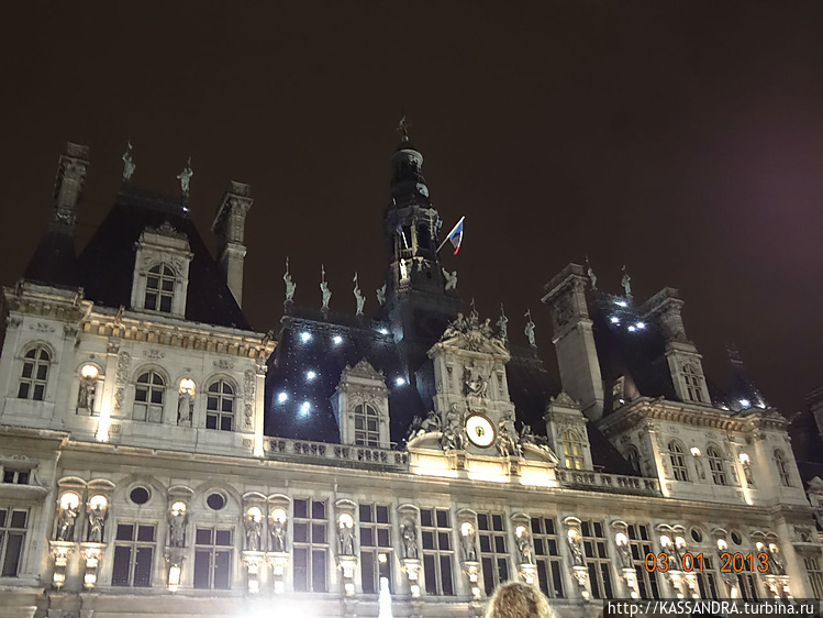В этом дворце, называемом чаще Отель-де-Виль (Hôtel de Ville), расположена Парижская мэрия. Вечером он просто сияет в лучах подсветки. Старое здание ратуши сгорело, подожженное коммунарами в 1871 году.