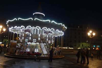 Если снимать на камеру, то можно увидеть в толпе танцующих от радости девушек, целующиеся парочки, французов с собачками, детей, ожидающих в очереди на карусели или на каток.