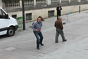 Нет, он не приставал к прохожим, не задевал их. Хотя, со стороны это может показаться похожим. Мистер Икс просто пародировал.