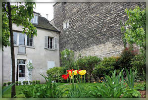 Из небольшого сада, что окружает знаменитый особняк, хорошо видны колокольня Сакре-Кёр и не менее известная водонапорная башня Монмартра.