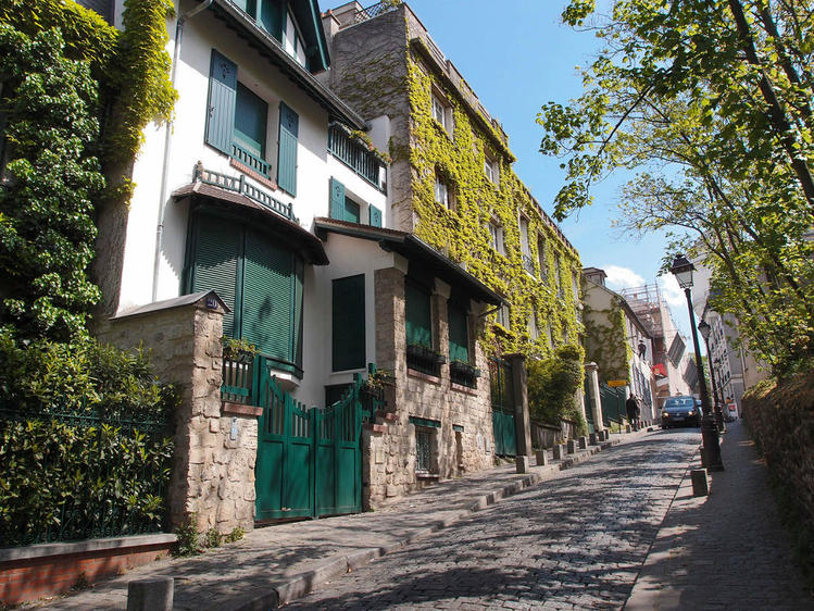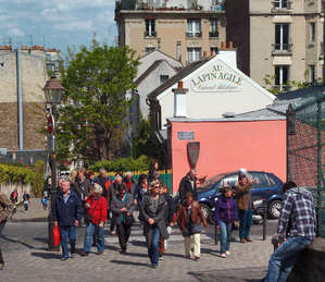 Еще удерживая в голове какие-то детали из заметки Сергея, я подошла к легендарному кабаре "У ловкого кролика" (Au Lapin Agile), благо расположено оно прямо возле виноградников. Но дальше все пошло спонтанно, ведь интернета, чтобы свериться с "правильным" маршрутом, у нас под рукой не было, а улицы Монмартра под ногами как раз были, и они нас закружили и повлекли вперед, все более чаруя.