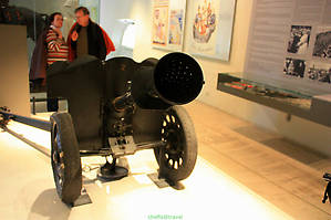 Во-вторых, коллекция очень разнообразная — от проржавевшего меча и дорожного набора рыцаря до оборудования полевого штаба времен Второй мировой войны и боевых батискафов. На стендах карты показывающие изменения, происходившие во французской истории. На экранах — фильмы, в основном про времена Первой и Второй мировых.