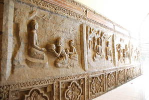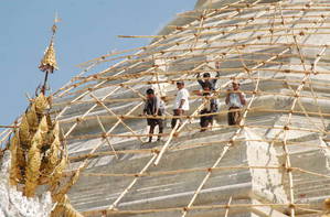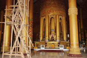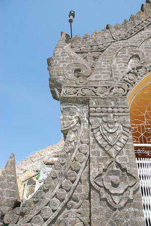 А в 1927 году на месте , откуда вывезли знаменитую статую Махамуни, выстроили пагоду. Сейчас идут активные работы по реставрации ступы. Внутри потрясающе красива резьба по камню.