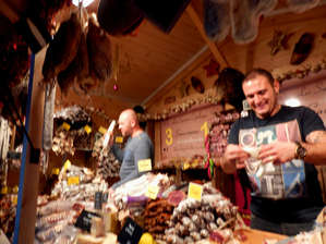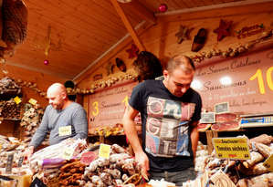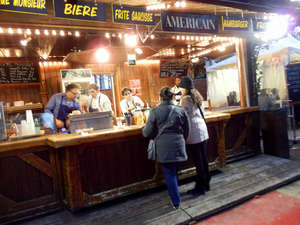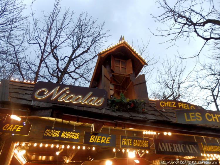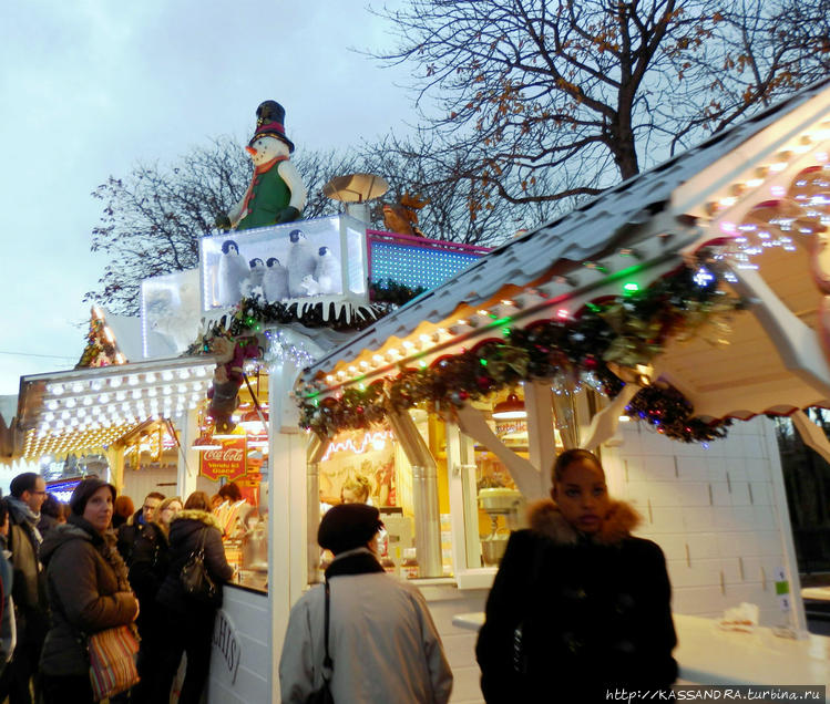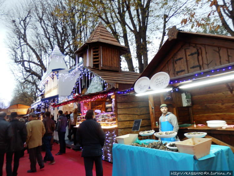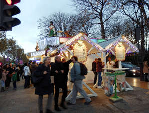 Праздничные рождественские ярмарки проходят в каждом районе города. Главная зимняя ярмарка в этом году находится рядом с площадью Согласия и тянется вдоль Елисейских полей. Здесь можно купить и на месте попробовать традиционные новогодние угощения: кровяную колбасу, гусиную печенку, жареного гуся или индейку, орехи, каштаны, сладости.
