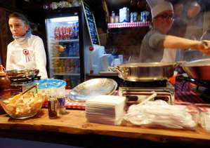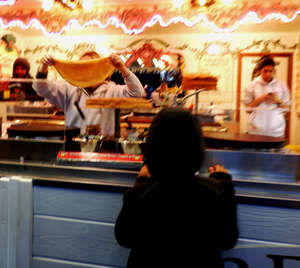 Для детей жарят блины-крепы со сладкими начинками, для взрослых — открывают устрицы.