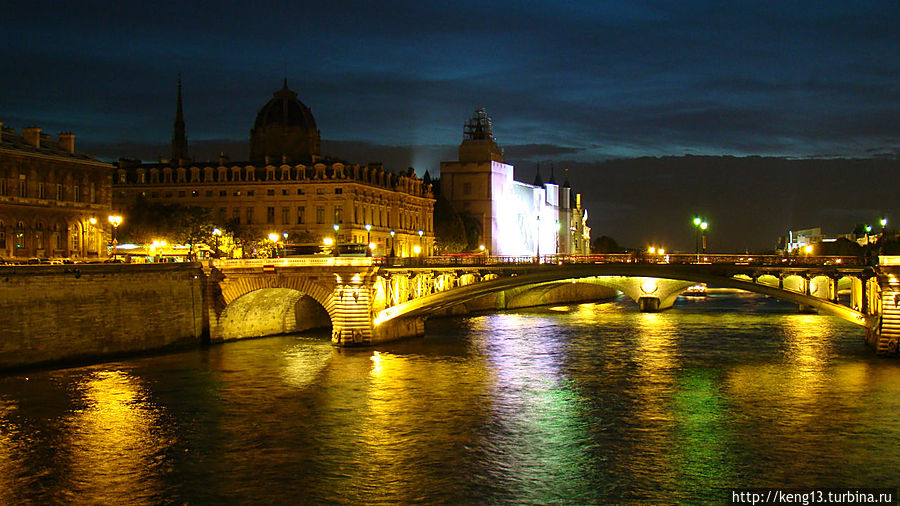 Проводим там много времени и ступаем на мост ведущий к острову Сите уже за темно.