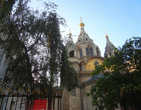 О том, что в 1857 году часть этой французской улицы была приобретена на пожертвования русского народа для строительства церкви, можно лишь догадываться, увидев сквозь зелень берез золотые купола собора, получившего название в честь русского полководца Александра Невского.