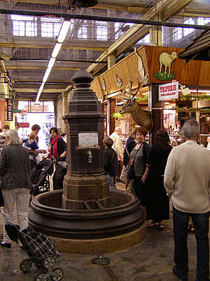 Итак, в воскресный день я отправилась на рынок Алигр (place d’Aligre), что расположился между бульваром Дидро и авеню Домениль. Рынок популярен благодаря невысоким ценам на продукты, наличием блошиных развалов и старинному рыночному павильону Marché Beauvau — ажурному изящному сооружению с фонтаном, вокруг которого на прилавках идиллически разложены сыры, паштеты, овощи. Парижане снуют с возками и сумками, стоят в очереди к мясникам, придирчиво выбирают фрукты. Конечно же и мы становимся в очередь...невозможно не попробовать вон тот пашет, и это мясо, и вот это не знаю что, запеченное в фольге... А хлеб мы покупаем напротив, в буланжери Le pain au naturel, о котором в путеводителе с юмором написано, что возле него «можно снимать кадры для репортажей в брежневскую «За рубежом»: «С раннего утра парижане вынуждены выстраиваться в бесконечные очереди за хлебом». (с) Ну что ж, мы можем убедиться, что очередь таки стоит, потому что хлеб в нем такого высокого качества, что просто не поддается описанию).