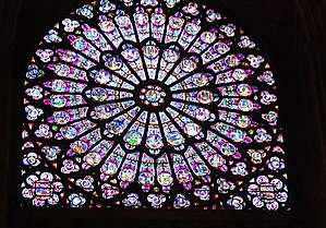 Каменные розы на фасаде Нотр-Дам-де-Пари — готический символ Парижа. Витражи собора Парижской Богоматери — это целая эпоха. Старинные витражи одиннадцатого века, вернее, их фрагменты, сохранились в соборе Сен-Дени в предместье Парижа, служившем усыпальницей французских королей. В этом соборе можно увидеть элементы и мотивы, характерные для готического искусства. Но первым собором, построенном в готическом стиле в Париже является Нотр-Дам.