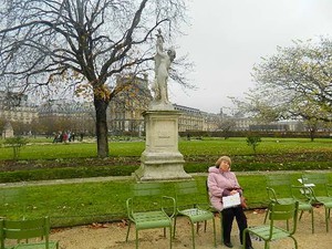 Выйдя из Лувра попадаем в сад Тюильри. Не спеша идем мимо скульптур, отклоняемся к небольшому пруду с камышом, утками и чайками,доходим до центрального пруда. Здесь садимся на стоящие вокруг пруда стулья и отдыхаем. Впереди еще полдня Парижа.