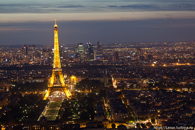 Вот она-кульминация парижского вечера- Эйфелева башня включила подсветку