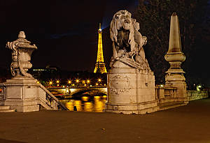 Вечер. Доезжаем на метро до площади Конкорд. "Везение" номер два. Там не то собирают, не то разбирают какую-то огромную конструкцию. Эх... Попытка пройти к Лувру через сад Тюильри тоже неуспешна, как оказалось он закрывается в 7 вечера.. Ну что ж, идем в сторону набережной Сены и моста Александра III.