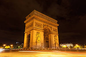 Но вот и Триумфальная арка. Видимо какая-то странная "везуха" решила нас преследовать и подсветки на арке не было. Занимаем место у светофора, ждем пока рассосется кучка китайцев, снимающихся на фоне всего подряд.Ну что же, даже без подсветки арка выглядит вполне интересно.