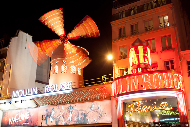 Вот и знаменитое кабаре. Возле него толпы туристов, тянущихся как мотыльки на огонь, к крыльям красной мельницы.
