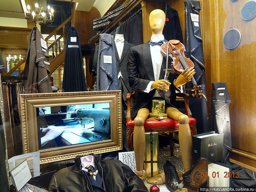 Вечером в Париже невозможно пройти мимо освещенных витрин магазинов. Модные дизайнерские фантазии увлекают и забавляют.