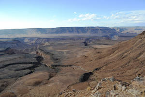 Фиш Ривер каньон сформировался в результате тектонической активности и деятельности реки. Во время сухого сезона Fish River (Рыбная река), самая длинная река Намибии, пересыхает, распадаясь на дне каньона на отдельные озерца и лужицы. А вот в период дождей, особенно в конце лета( то есть в конце нашей зимы), здесь течет бурлящий стремительный поток, который и формирует каньон...