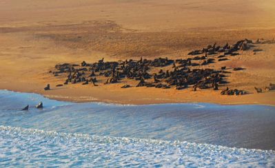 Да-да, несколько километров на берегу заняли колонии морских котиков! Вот так, прямо в пустыне! Видимо море хорошо кормит, а солнце хорошо греет)))