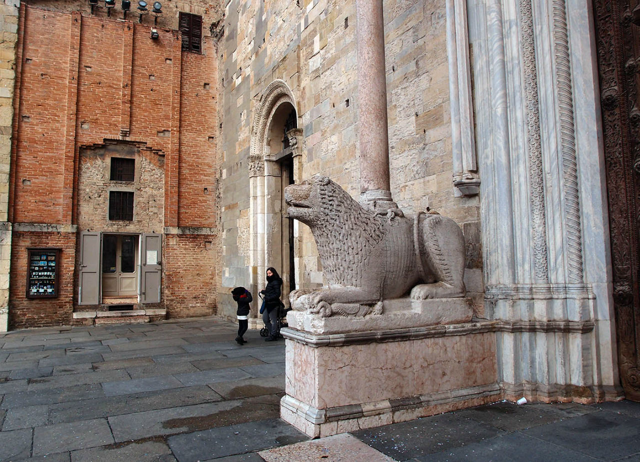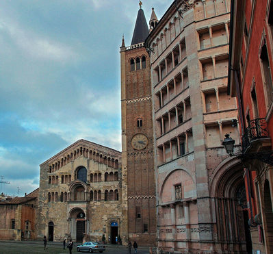 Ещё несколько шагов по ул. Карло Пизакане, и мы окажемся на Соборной площади (piazza del Duomo), на которой находятся Кафедральный собор и Бабтистерий — самые значимые исторические памятники Пармы.