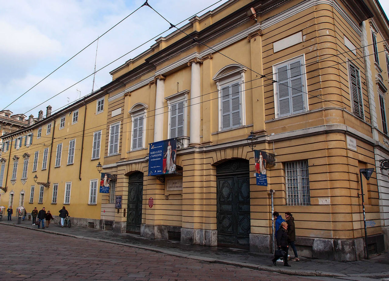 По соседству находится театр Рэджио, созданный по распоряжению герцогини, всегда мечтавшей иметь в Парме театр, похожий на миланский Ла Скала.
