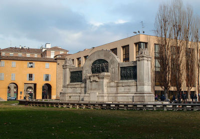 памятник Джузеппе Верди — жителю Герцогства ПармаНапротив, на улице Гарибальди и нескольких примыкающих к ней улицах находится комплекс зданий, перестроенный из целого квартала жилых домов, объединённых вместе в Palazzo di Rezerva. Комплекс был создан во времена Марии Луизы с целью расширения площадей для герцогской резиденции. В одном из его зданий сейчас располагается уже упомянутый выше музей Глауко Ломбарди.