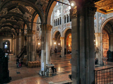 Бабтистерий. Роспись куполаКафедральный собор Пармы, посвящёный Успению Девы Марии, считается одним из важнейших памятников падуанского романского стиля северной Италии. Подобные храмы сохранились также в Кремоне и Пьяченце.