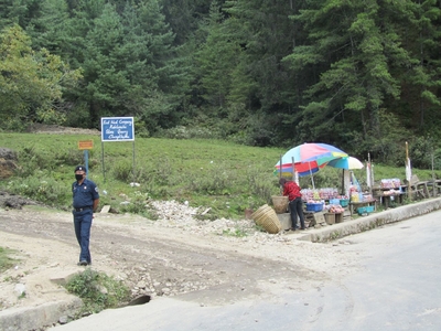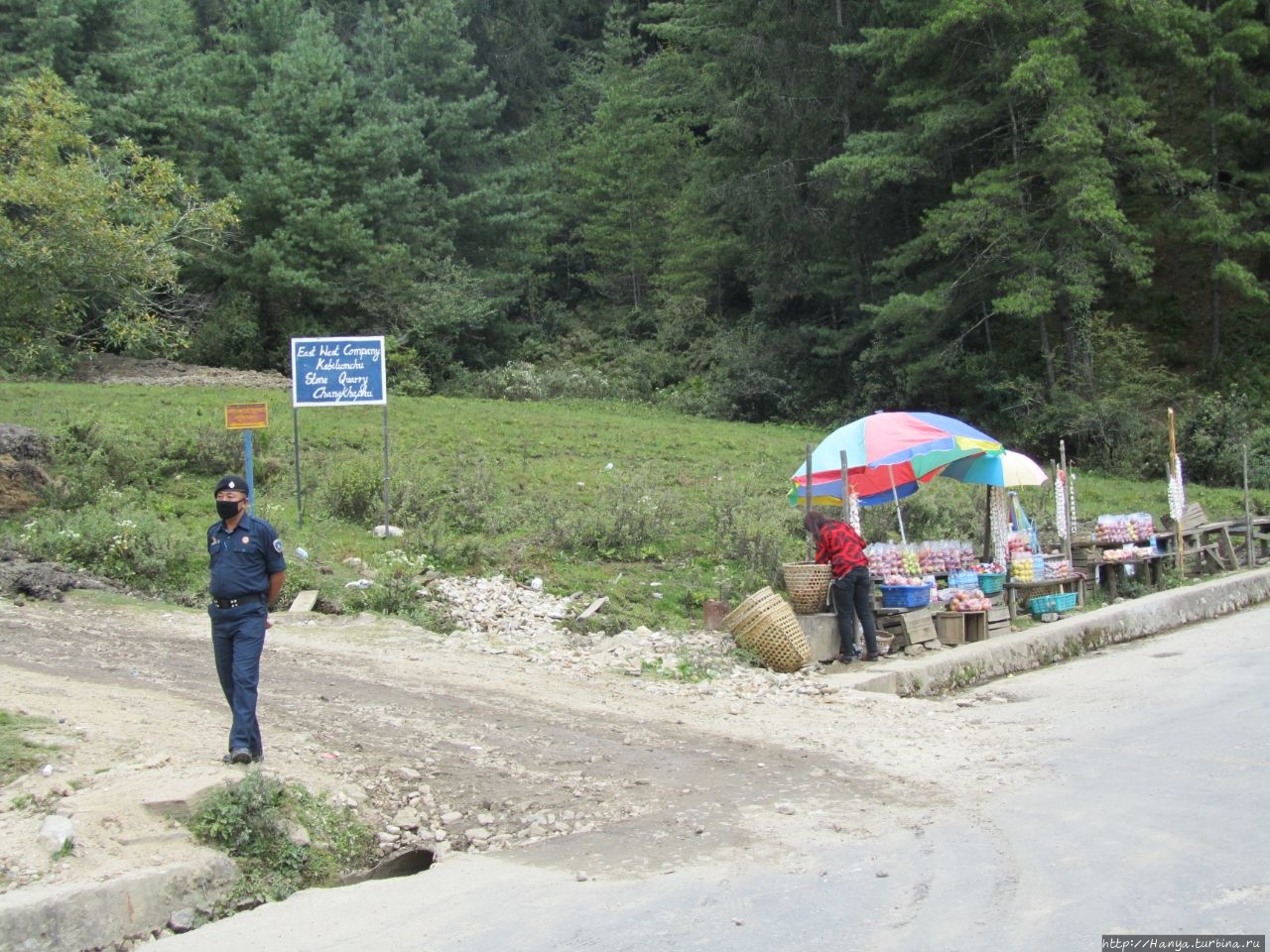 Вдоль дороги кое-где уже встречается обычная торговля фруктами. Просим Тандина остановиться, так как хотим купить гуаву, и водитель тормозит возле оживленного импровизированного рынка. Нас не выпускают из машины, а водитель возвращается с пустыми руками – гуав у торговок нет, только овощи.