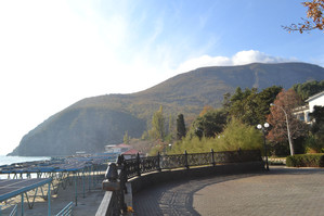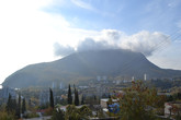 Неожиданный монастырь. Туман медленно полз по вершине горы, спускаясь на склоны, а внизу виднелись маленькие на фоне горы домишки Партенита.Считается, что название горы произошло от тюркских слов «аю» — медведь и «даг» — гора. Выходит, что мы видим Медведь-гору. Есть несколько легенд, обыгрывающих это имя.