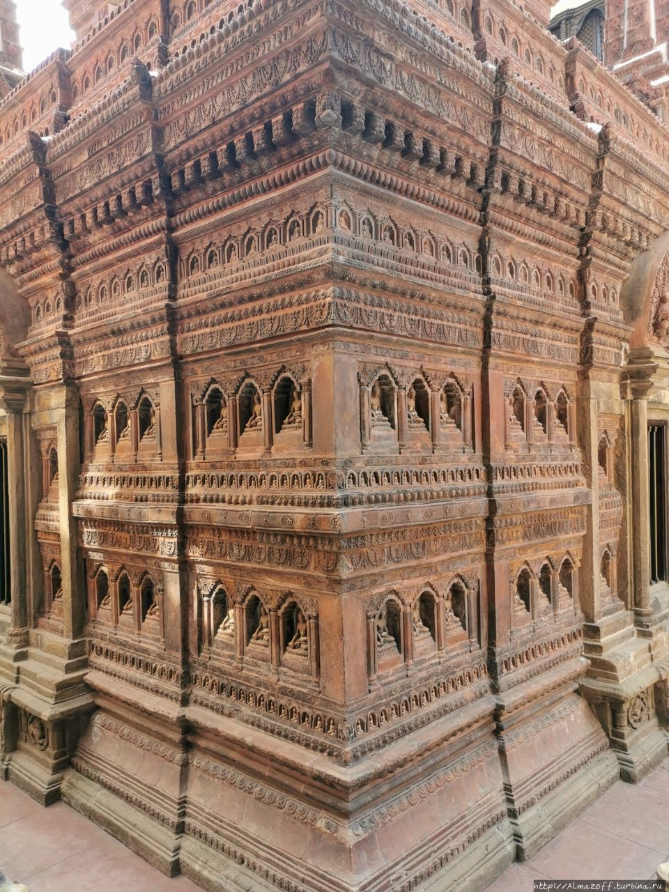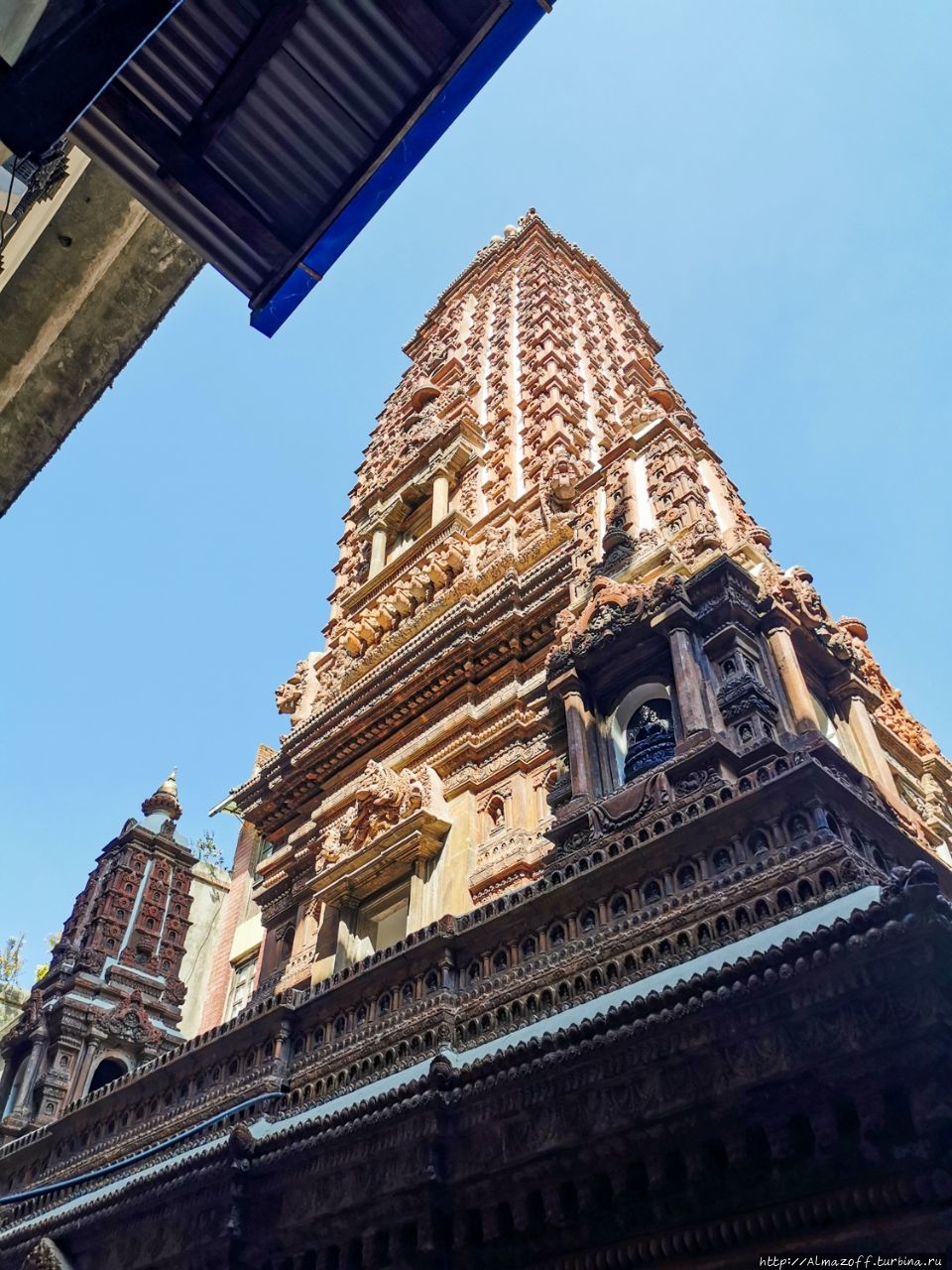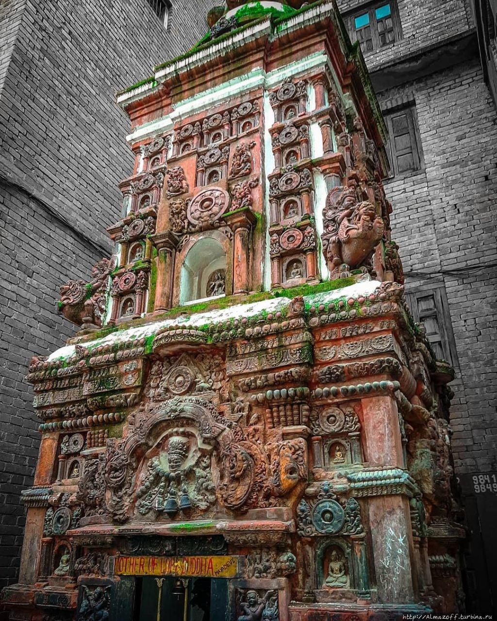 К сожалению, поскольку терракотовая святыня находится в небольшом внутреннем дворе, где не хватает свободного пространства, чтобы увидеть верхушку ступы. Для этого нужно подняться на крышу соседних домов.