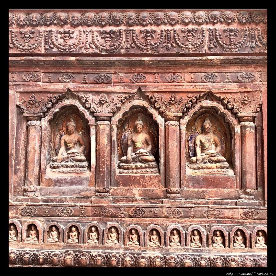 Самая большая буддийская ступа в миреВ долине Катманду есть пять главных мест Ваджрайогини, одно из них находится в древнем Патане. Ступа Махабудда (1000 Будд, из-за тысяч маленьких изображений Будды, которые покрывают её поверхность) 30 метров высотой была заложена в 1564 году. Это копия исторической Ступы Махабодхи в месте Просветления Будды в Северной Индии в Бодхгае. В свою очередь Ступу в Бодхгае восстанавливали по образу Ступы в Патане, на месте, которое было найдено англичанами в ходе изучения записей китайского монаха Сюанзана. Предположительно, фундамент ступы был заложен художником и архитектором в 7 веке нашей эры.