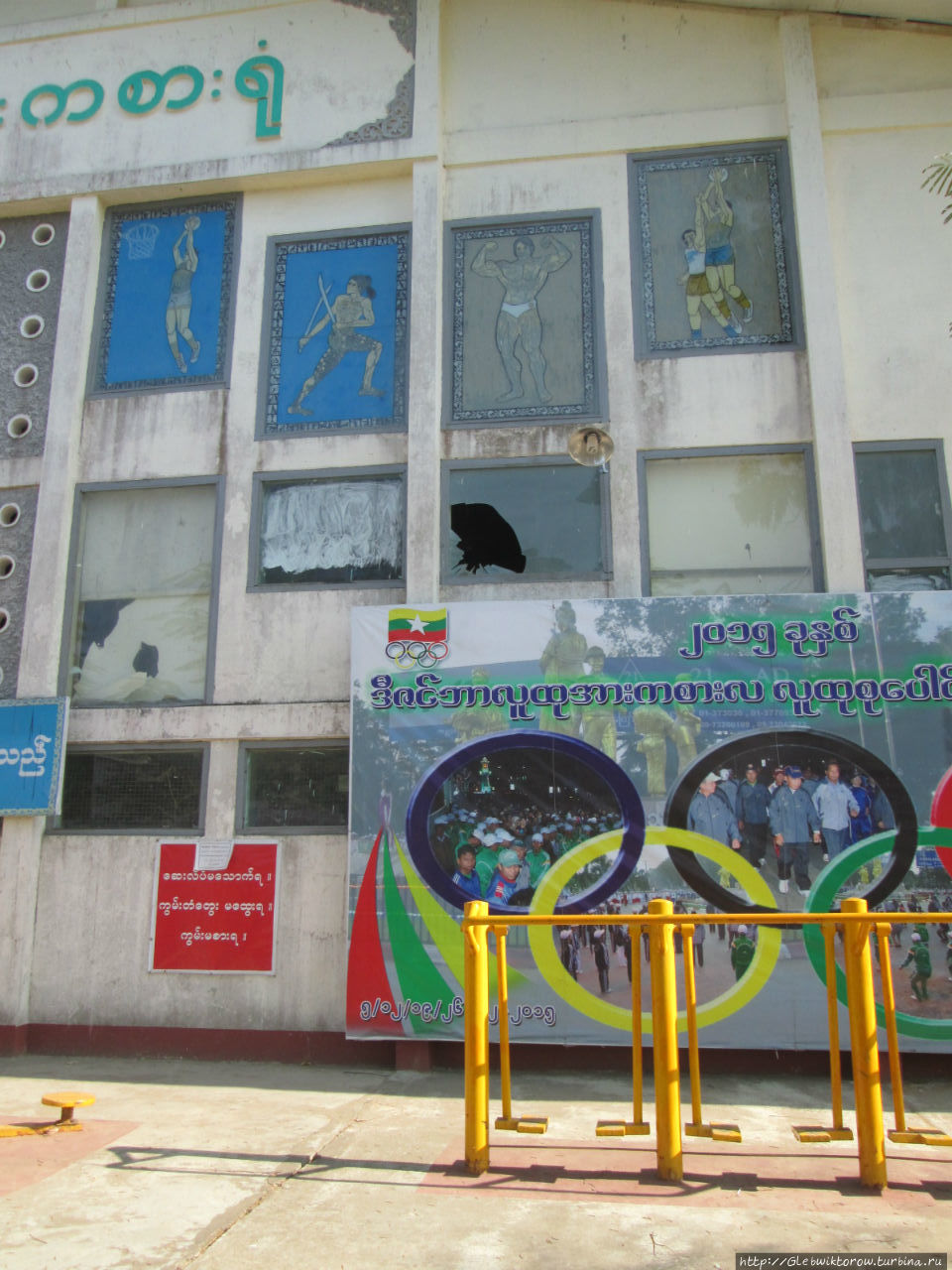 Напротив него какой-то спортивный центр, когда построен — не знаю, может в 1980-ые, ну скорее всего в 1990-ые, у входа подписано только на местном языке