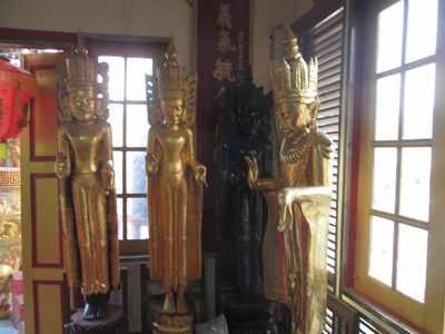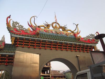 В Патейне мне неожиданно повезло — первый раз в жизни посетил китайский храм, который находится в состоянии строительства, то есть почти готовый, но некоторые скульптуры и участки еще не отделаны и не окрашены. Дело было вечером , на закате, где-то в 17-30 я гулял по кварталам и смотрел мечети , искал храм индуистов. Этот китайский храм обнаружился поблизости, в путеводителе он не указан. Народ там гостеприимный, меня пригласили осмотреть все внутри.