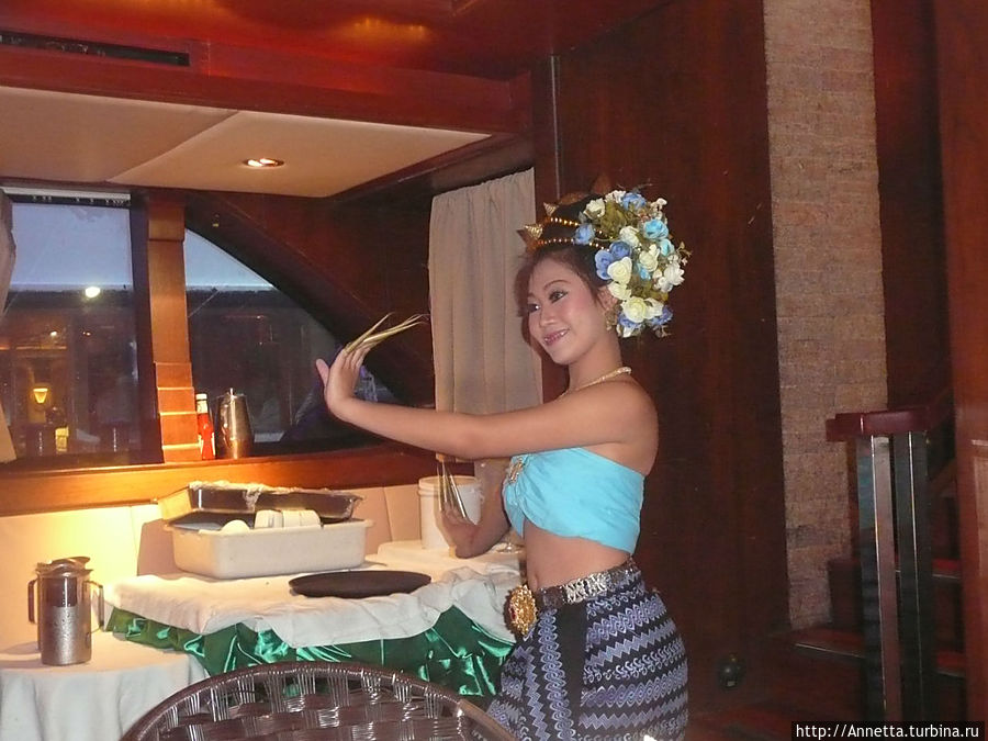 Завершением экскурсии по Бангкоку была прогулка на катере по реке Чао Прайя с ужином, живой музыкой и танцами как в исполнении тайских артистов, так и нас самих. Правда, она чуть было не сорвалась, но это исключительно по вине некоторых туристов, которые застряли в дебрях торгового центра Сиам Парагон. Но в итоге, все закончилось благополучно.