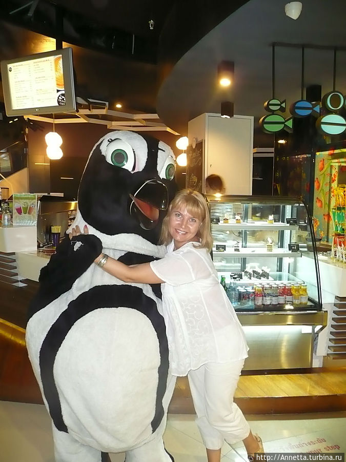 Экскурсия в Бангкок была немного скомканной из-за пробок и, все-таки не очень удачной организации. Очень долго ждали в Байок Скае, когда нас запустят в ресторан, в итоге это произошло за полчаса до его закрытия. Океанариум посетили тоже галопом, и едва успели приобрести билетики на 5D. Некоторым нашим туристам, пришедшим чуть позже билеты уже не достались, что, естественно вызвало бурю негативных эмоций с их стороны. В итоге, гид им вернула стоимость 5D просмотра. Смотрели мы мультфильм по мотивам "Маленького принца" Сент-Экзюпери. Все на английском, но понятно и смешно. А на выходе нас встречал Пингвин ))).